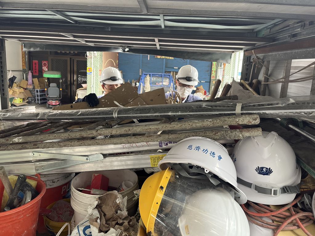 慈濟於27日搬離修繕所需料材、物資補給品、行政作業設施等物品後,立即動員志工協助整理修繕志工安單的曾文活動中心室內及室外環境外,也在撤場前協助修繕曾文青年活動中心部分因地震受損地區。
