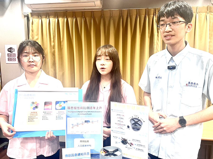 基隆商工的三名學生,觀察入微,發揮創意,發明了「智慧藥盒」,防止吃錯藥,按時吃藥,成為家庭必備,維護健康,結合現代科技,智慧性的藥盒。不僅贏得全台青少年發明展的金牌,更獲得參加2025年IEYI世界青少年發明展的代表權,將到東京大阪角逐世界冠軍。