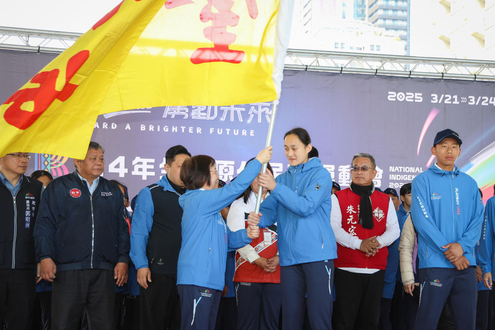 【記者彭勝郎台中報導】兩年一度的全國原住民族運動會19日起至24日一連六天於高雄市舉行,台中市政府代表隊19日由副市長賴淑惠在市府中央挑高川堂舉行授旗儀式,給予代表隊選手鼓舞打氣,希望今年能再創輝煌。