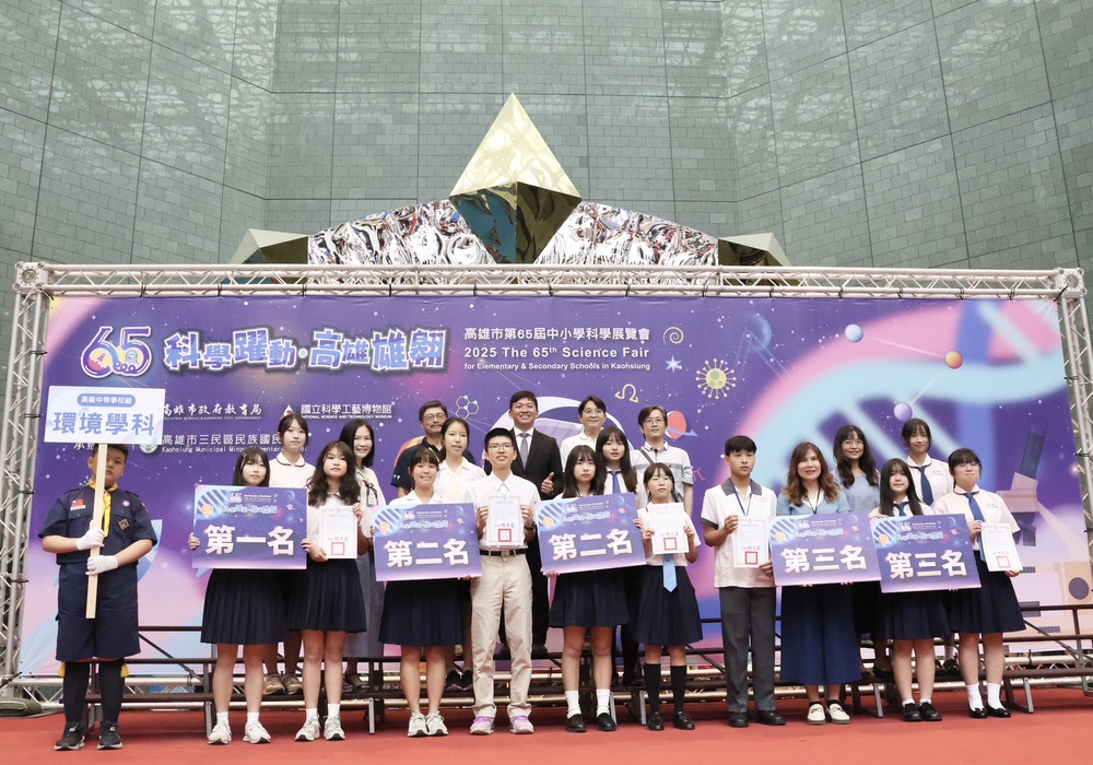 【記者陳志昌高雄報導】高雄市第65屆中小學科學展覽會26日在國立科學工藝博物館舉行頒獎暨開幕典禮,今年共計近400件來自高中職、國中與國小科學作品參賽,最終選出36件優秀作品,代表高雄市角逐全國科展殊榮;高雄市政府教育局長吳立森親臨會場,表揚得獎師生,並勉勵學生「大膽假設、小心求證」,勇於探索科學奧秘,培養問題解決能力與創新思維。