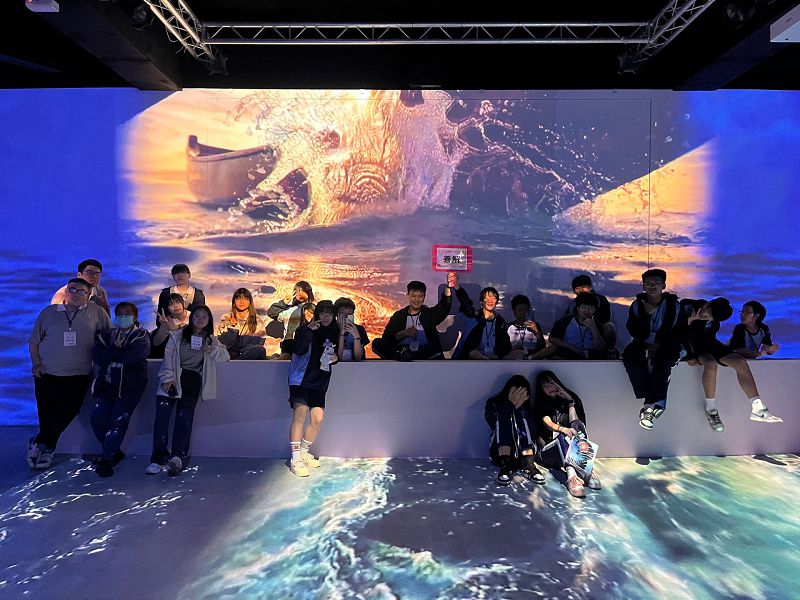 活動主場「XR樂齡文化科技體驗場域-Dome花創聚樂部」提供多樣化的沉浸式科技體驗。學生們在「虛擬海底世界」看見自己繪畫的海洋生物置身於深海,與珊瑚、海龜、魚群共游,親身感受自然生態的壯闊與美麗,激發對科技與環境的雙重關懷。而第十九棟「AI流行音樂中心」,大小學伴分組體驗AI作曲,透過人工智慧生成旋律與節奏,自由創作屬於團隊的專屬音樂作品,不僅學習數位創意,更在過程中加深彼此默契,留下難忘回憶。