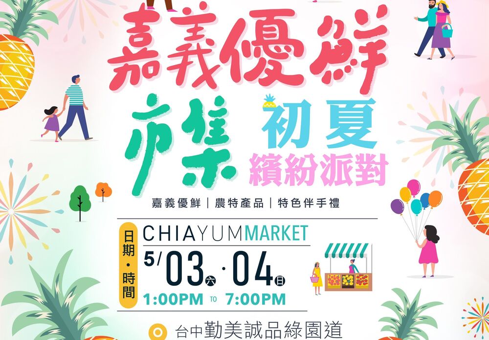 【記者謝敏政嘉義報導】初夏陽光燦爛的好時節,「嘉義優鮮-初夏繽紛派對」將於本週末5月3日、4日13時至19時,在台中草悟道B區熱鬧登場,市集由嘉義縣政府與台中市農業局合作,精選在地農特產品,融合創意試吃、健康飲品與季節限定水果,邀民眾來場繽紛又美味的夏日派對。