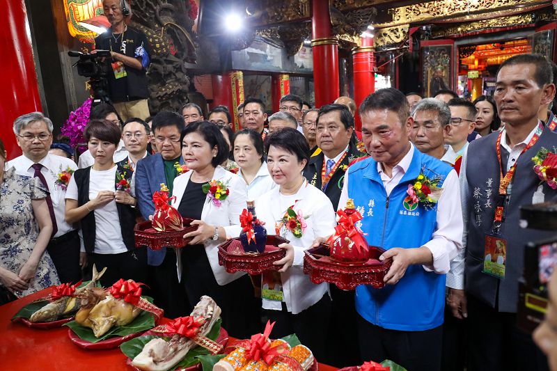 【記者彭勝郎綜合報導】全台矚目的苗栗縣苑裡拱天宮白沙屯媽祖10天9夜徒步北港進香之旅2日凌晨正式啟程,行程橫跨苗栗、台中、彰化、雲林4縣市,全程約400公里,預計5月11日回宮。台中市長盧秀燕1日晚前往拱天宮參拜祈福,並與苗栗縣長鍾東錦、雲林縣長張麗善及拱天宮主委洪文華一同恭請媽祖登上鑾轎,同時祈求媽祖庇佑台灣國風調雨順、國泰民安,也祝福進香活動一路平安順利、圓滿成功。