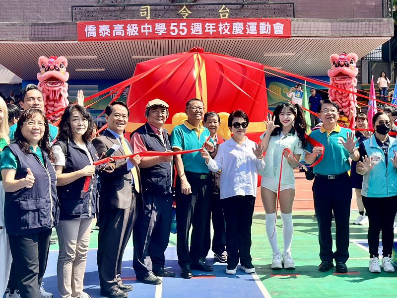 台中市私立僑泰高中55週年校慶、傑出校友表揚及園遊會活動2日熱鬧登場,市長盧秀燕與教育局長蔣偉民皆到場祝賀,與啦啦隊女神李多慧一同揭開禮物盒,象徵為校慶活動揭幕,氣氛歡樂。盧市長表示,僑泰高中辦學績優,是一所非常好的學校,「祝福僑泰高中生日快樂、校運昌隆,全校師生身體健康、心想事成!」近年僑泰高中升學績效有目共睹,不僅高中部學生的大學學測成績大放異彩,今年更有同學勇奪90級分,榮登全國榜首;國中部學生的會考成績也相當亮眼,去年2位同學以111滿點,勇奪全國榜首。未來將持續秉持「誠、博、精、勤」校訓,堅守教育初心,勇於創新突破,成為中部地區培育人才的堅實堡壘與希望燈塔。台中市長盧秀燕與啦啦隊女神一同揭開禮物盒,象徵為校慶活動揭幕。(圖文:台中記者彭勝郎)