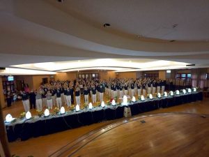 當典禮組手捧燈燭,一步一步跟著〈靜寂清澄〉的樂音,緩步進入禮堂時,靜謐殊勝的氛圍,頓時壟罩著會場。