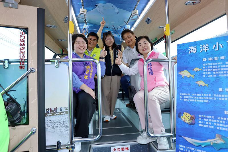 【記者楊川欽台中報導】台中海線地區4日新增一條台灣好行路線,「679台中活力海洋線」正式啟動,台中市觀光旅遊局4日在高美濕地舉辦「高美不一樣音樂會」,以Taiwan Orange為主色調的「679台中活力海洋線」車體外觀嶄新亮相,吸引大批民眾拍照按讚,車內塗裝富涵在地元素,包括深具教育意義的海洋主題裝潢,宛如置身海底世界,珊瑚、水母、豹紋鯊、魟魚與小丑魚悠游其間,兼具海洋生態知識與視覺美感。