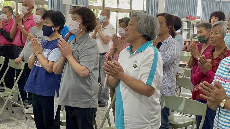 詹龍雀又說:「今天我們都七八十歲的年紀了,當年的同伴有的行動不便了,有的不在了,感恩慈濟志工讓我們在莊嚴的氛圍裡禮敬佛菩薩,祈願保佑我們社區祥和平安,大家無憂、無愁、無災、無難。尤其感念慈濟在有困難、有需要的地方,志工總是盡心力付出的善行,是值得我們學習的榜樣。」