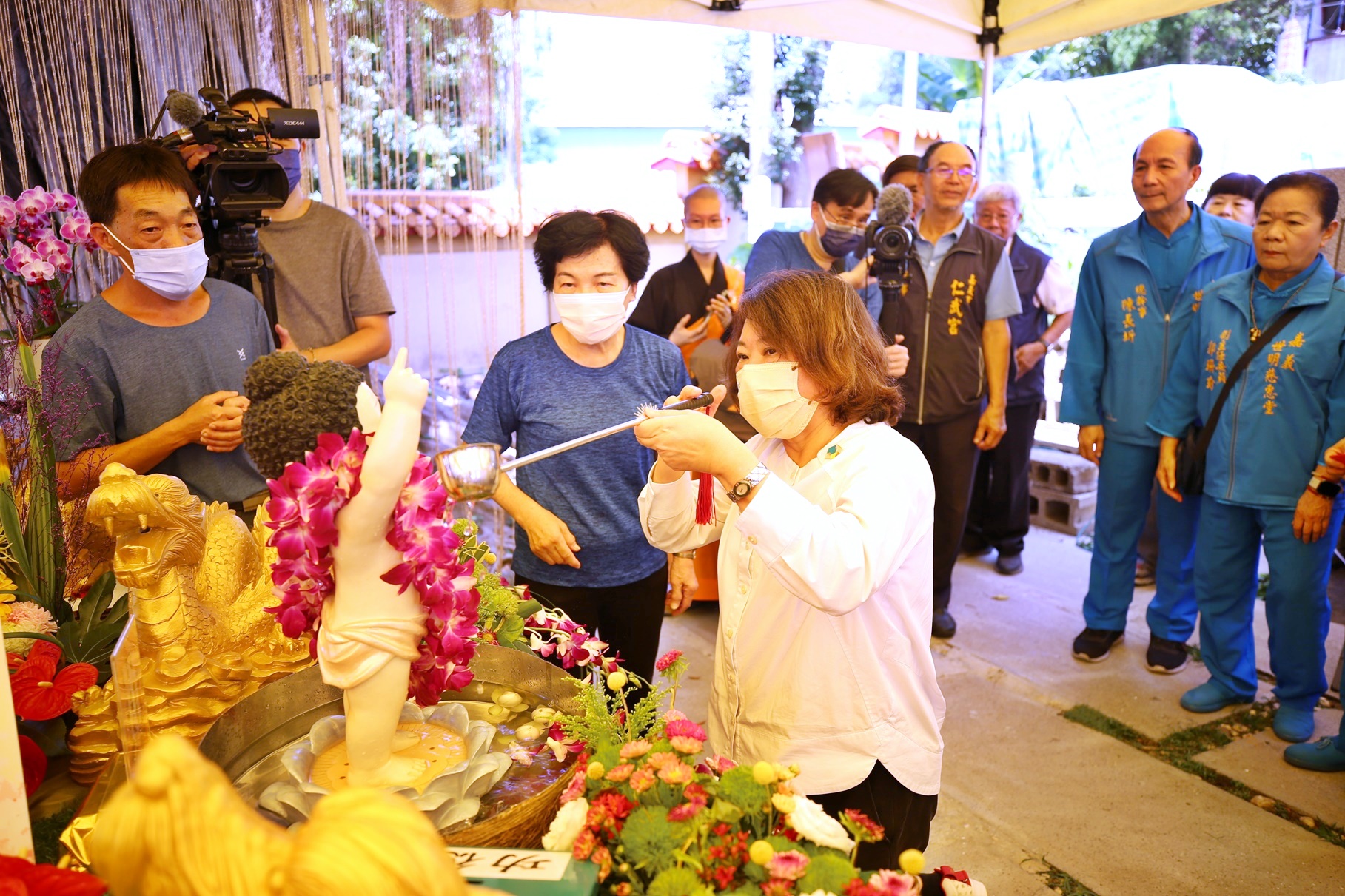 覺禹法師也提到,在佛陀誕生的這天,我們不僅要緬懷佛恩,更應將佛法落實於日常生活中,從尊重生命、反對霸凌,到實踐三好:「說好話、做好事、存好心」,讓人與人之間多一分理解與祝福。她以「行善不是等待他人開始,而是從自己做起」勉勵大眾,期待大家發願行善、累積福報,為家庭、社會、國家帶來祥和與希望。最後,感謝黃敏惠市長與市府團隊長期支持宗教文化推廣與社區融合,並邀請各界善信明年再度齊聚佛誕節,共同參與浴佛祈福。