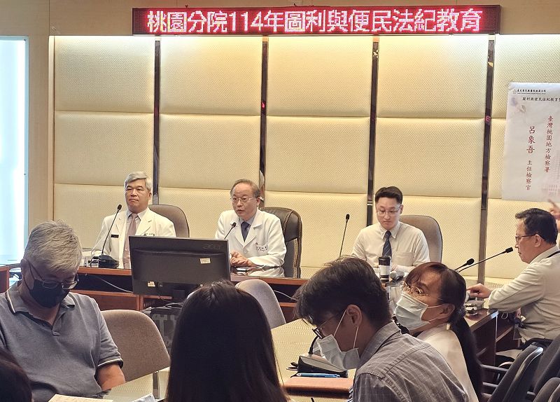 【記者吳惠民桃園報導】臺北榮民總醫院桃園分院為深化同仁及相關往來廠商的廉潔誠信觀念與正確法律認知,日前於行政大樓1樓院部會議室,舉辦「圖利與便民法紀教育暨座談會」,特別邀請臺灣桃園地方檢察署肅貪組主任檢察官呂象吾蒞院授課,會議中講者與台下互動熱絡,與會同仁踴躍提問,會後均表示收穫滿滿。