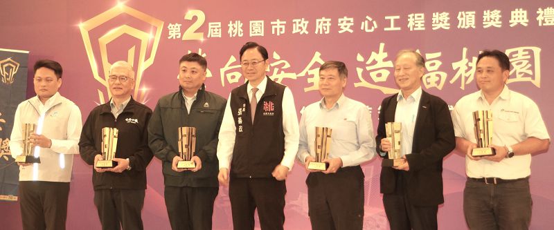 張善政指出,本屆共計7件工程脫穎而出,包括表現優異的4件公共工程及3件民間工程,為本市營造工程樹立職安典範。期盼這些標竿案例能引領桃園其他工地,即便未參賽也能持續重視工地安全,守護勞工安全,讓桃園在進步的同時,也將災害風險降至最低。