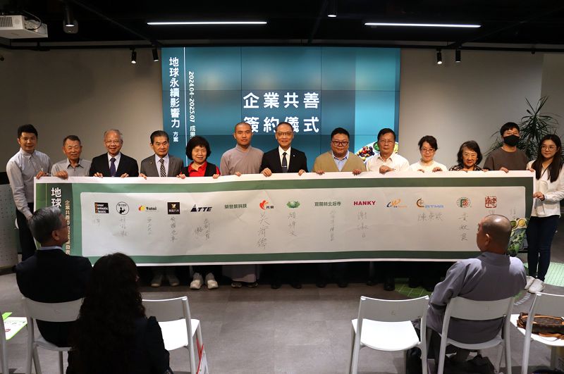 由慈濟基金會主辦、北三區榮董團隊承辦的《地球永續影響力方案》,5月7日在臺北市「植境複合式概念館」盛大舉行企業共善簽約暨成果發表會,除了展示青年蔬食行動一年的豐碩成果,並與13家企業進行聯合簽約儀式,期盼號召更多企業加入共善行列,與青年共創低碳未來。