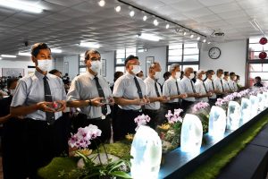 活動最後,在〈大回向〉時啓發悲智願力,志工禮謝佛恩,獻上最敬禮,也虔誠祈禱,祈求災難消弭,莊嚴簡樸浴佛愛灑,讓人感受到溫馨安祥的氛圍。