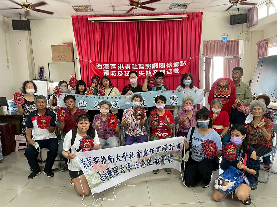 【記者鄭永德台南報導】嘉南藥理大學智慧生活學院日前深入台南市西港區永樂里、金砂里及慶安里,舉辦「樂齡健康輕運動-長輩活力小學堂」與「獅來運轉:西港獅面具創作趣工坊」社區活動,結合專業運動指導及在地文化傳承,帶領社區長者透過安全有效的運動及創作課程,促進身心靈健康及跨世代交流,獲得在地居民熱烈回響,吸引眾多長輩踴躍參與,現場笑聲與掌聲不斷。