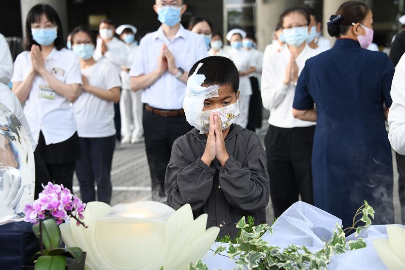 因巨大腫瘤遠渡重洋前來大林慈濟醫院接受治療的柬埔寨女孩阿莎,在阿嬤和國際醫療中心同仁陪同下,也來參加浴佛典禮,祈求治療順利,早日康復!