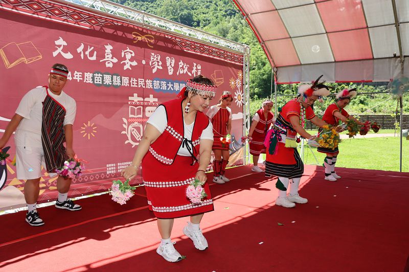 【記者林盈焜羅玉女苗栗報導】苗栗縣政府原住民族及族群發展處14日上午在泰安鄉泰雅原住民文化產業園區舉行原住民族部落大學開學典禮,以「文化喜宴、學習啟程」為主題,象徵學員與部落、文化、知識的結盟與承諾,並同時舉辦的「織藝的歷史-泰雅族服飾與生活」展覽亦隆重開幕,展期將至8月3日止推動終身學習。