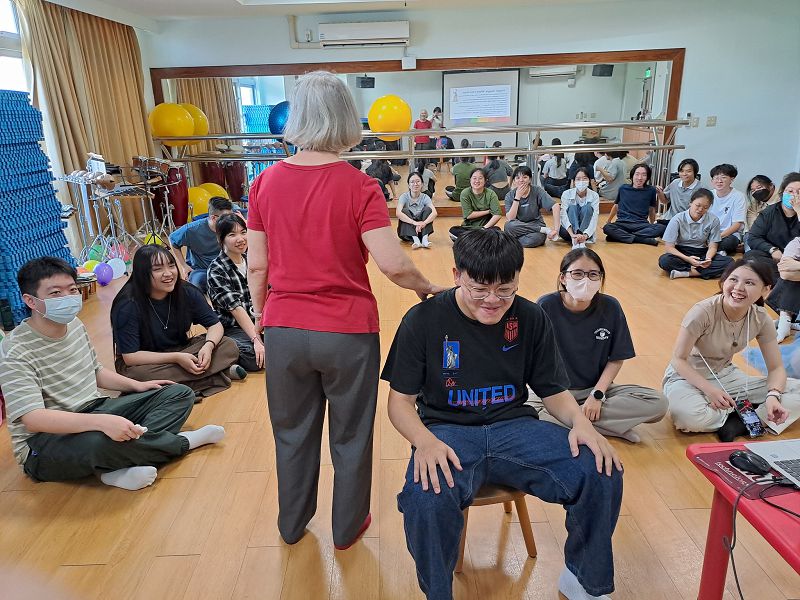 工作坊內容包括帶領遊戲與兒童發展的關係、團體遊戲、音樂律動活動、即興指令練習與問答互動,學生在實作中練習如何用英文表達想法、回應問題,逐步建立語言運用的信心。有學生開心地分享:「今天學了很多有趣的英文詞彙,老師講話的速度也很親切,讓我不再害怕英文課!」也有同學以英文反饋「Thank you, Dr. Moore, for inspiring me with great teaching ideas. I’m shy about speaking English, but I’ll try next time. And thank you, Teacher Anne, for always encouraging us to speak up.」