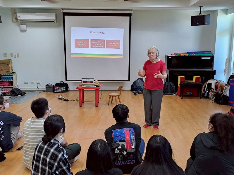 為落實雙語教育政策並強化學生英語應用能力,慈濟大學兒童發展與家庭教育學系於五、六月份,進行一系列英文學習活動,鼓勵學生投入英語互動學習。5月17日展開首場舉辦「Let’s Play Workshop」三小時全英文互動工作坊。課程特邀來自邀請美國德州女子大學(Texas Woman’s University)幼兒教育專家Dr. Lin Moore,以遊戲與音樂為媒介,引導學生在輕鬆、活潑的環境中,自然而然使用英語互動,讓學習變得有趣又有效。