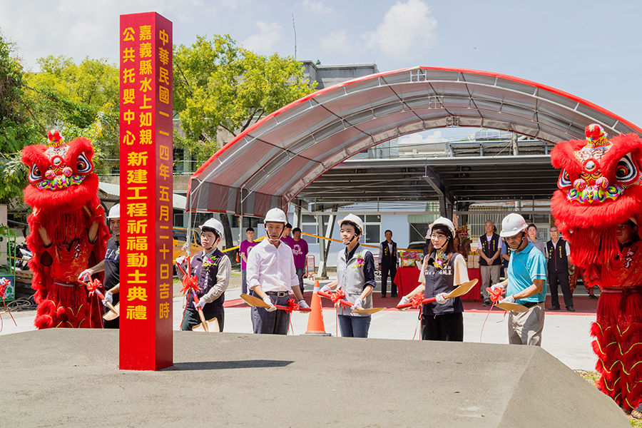 嘉義縣水上鄉人口4.7萬人,其中0至2歲嬰幼兒約360人,鄉內設置一間收托12名嬰幼兒的公共托育家園,但因排隊候補人數很多仍供不應求,嘉義縣政府爭取中央前瞻計畫補助3,000萬元、自籌1,000萬元,共斥資近4,000萬元建置水上如親公共托嬰中心,今20日正式動土,盼有效舒緩家庭經濟壓力。縣長翁章梁、水上鄉長林緗亭、各級民代出席動土儀式,一炷清香祈願璿宿上天宮媽祖工程平安順利、庇佑地方安寧,政府與地方居民期盼如親公共托嬰中心早日啟用,提供平價優質的育兒服務。(圖文:嘉義記者謝敏政)