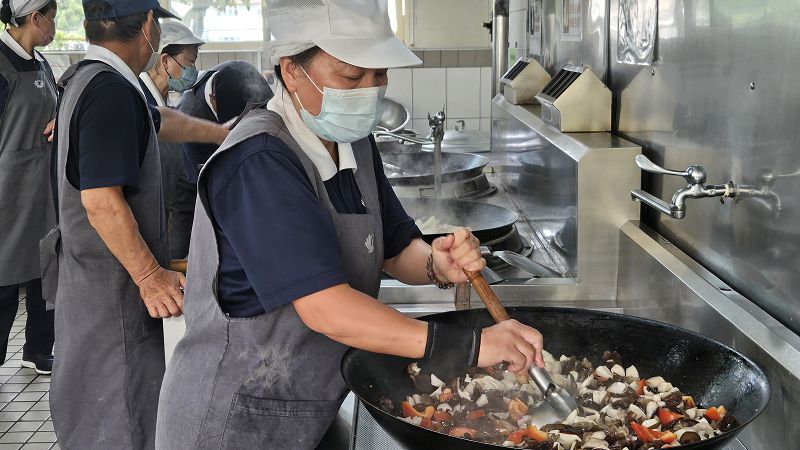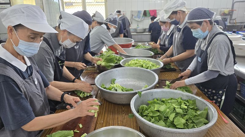為了共善推素,慈濟南投聯絡處的廚房,每周三都有20多位香積志工忙進忙出,分組洗菜、切菜、煮菜及整理配送等,熟練的一貫作業有條不紊。他們從早上8點開始,準備縣府244人及廣隆光電304個素食便當,半年來志工動員約500人次分工合作,以歡喜心做出共6636個好吃又健康的佳餚便當,為地球減碳盡心力。