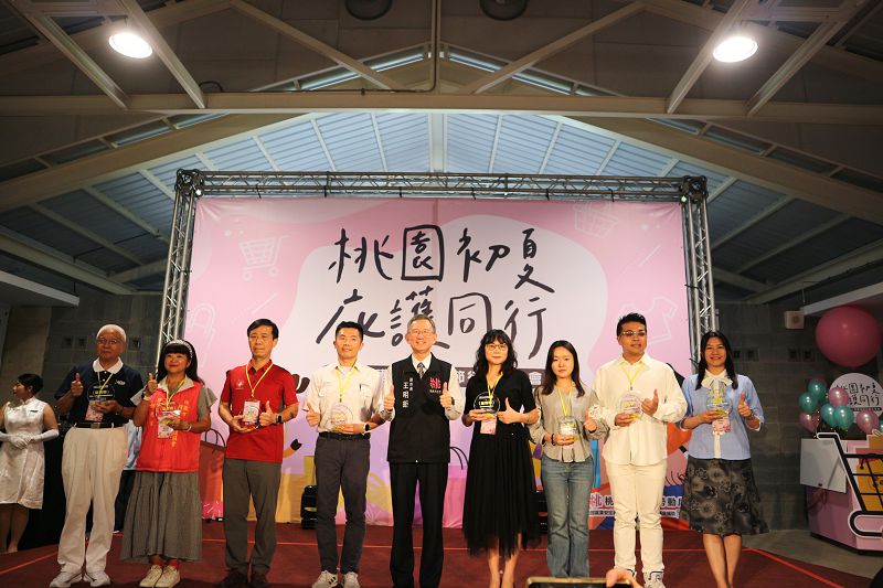 桃園市政府勞動局辦理「桃園初夏 庇護同行」桃園庇護工場購物節行銷記者會,15日下午於中原文創園區14倉熱鬧展開,桃園市副市長王明鉅、桃園市勞動局局長李賢祥、中壢區區長李日強、桃園區區長許敏松及以及各家社福單位及企業獲獎人一同蒞臨與會,桃園20 家庇護工場於現場共同推廣桃園庇護工場購物節好禮,邀請民眾踴躍採購同時支持身心障礙者就業。
