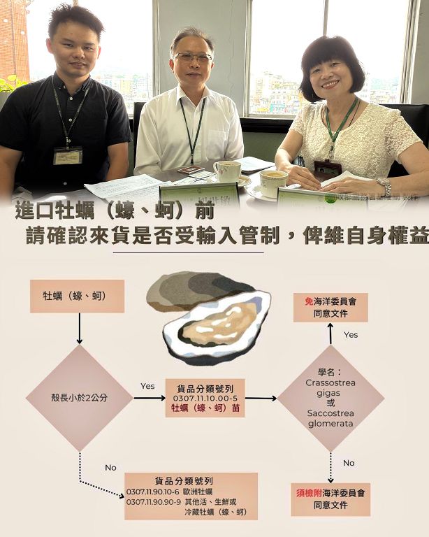 【記者柳芬馨基隆報導】進口活、生鮮或冷藏牡蠣(蠔、蚵),請確認來貨是否受輸入管制,俾維自身權益。