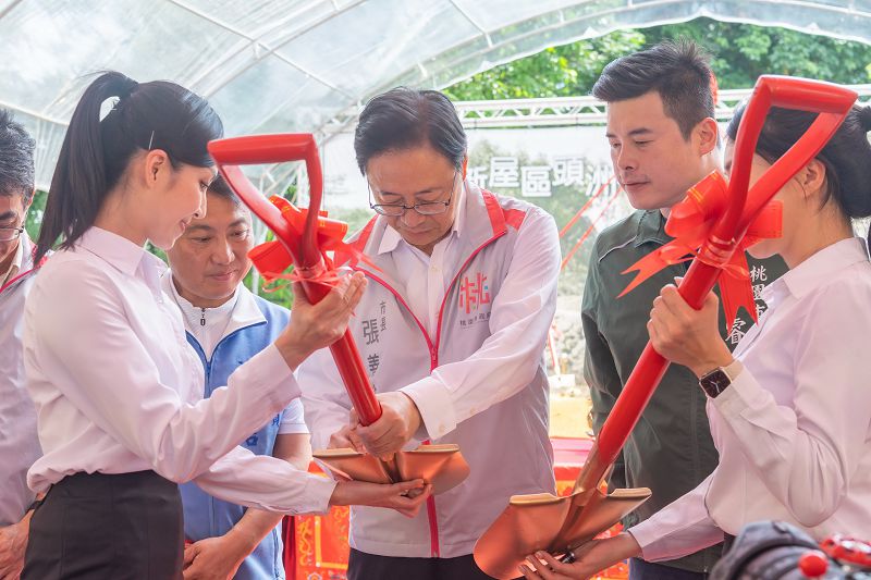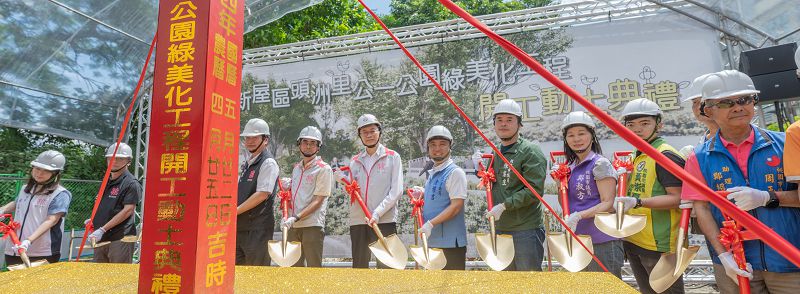 【記者劉國興桃園報導】桃園市長張善政日前在立法委員涂權吉、市議員陳睿生、鄭淑方、市府工務局長汪在宙、新屋區長鄭詩鈿、中壢區長李日強、農業部農田水利署石門管理處過嶺工作站長傅家俊、湧泉景觀顧問有限公司總經理陳永順、友騰景觀工程有限公司負責人溫秀惠等人陪同下,前往新屋區出席「新屋區頭洲里公1公園綠美化工程」開工動土典禮。