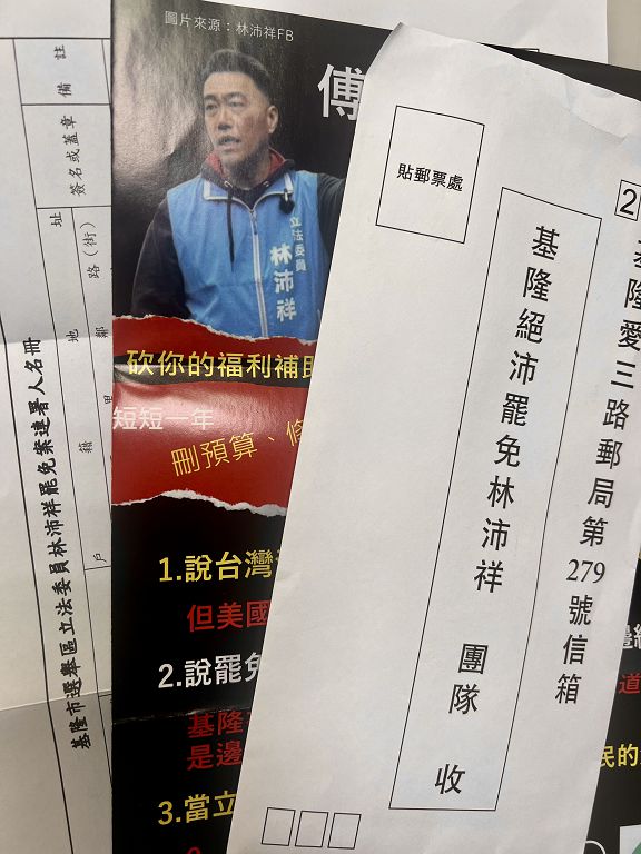 一早起來出了門口看到大樓所有的信箱裡,都塞了一封「罷免林沛祥」的信,內裝印刷精美的傳單和罷免連署人名冊、信封等。