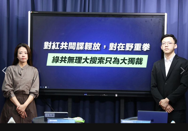 圖:國民黨23日召開「對紅共間諜輕放,對在野重拳 綠共無理大搜索只為大獨裁」記者會。