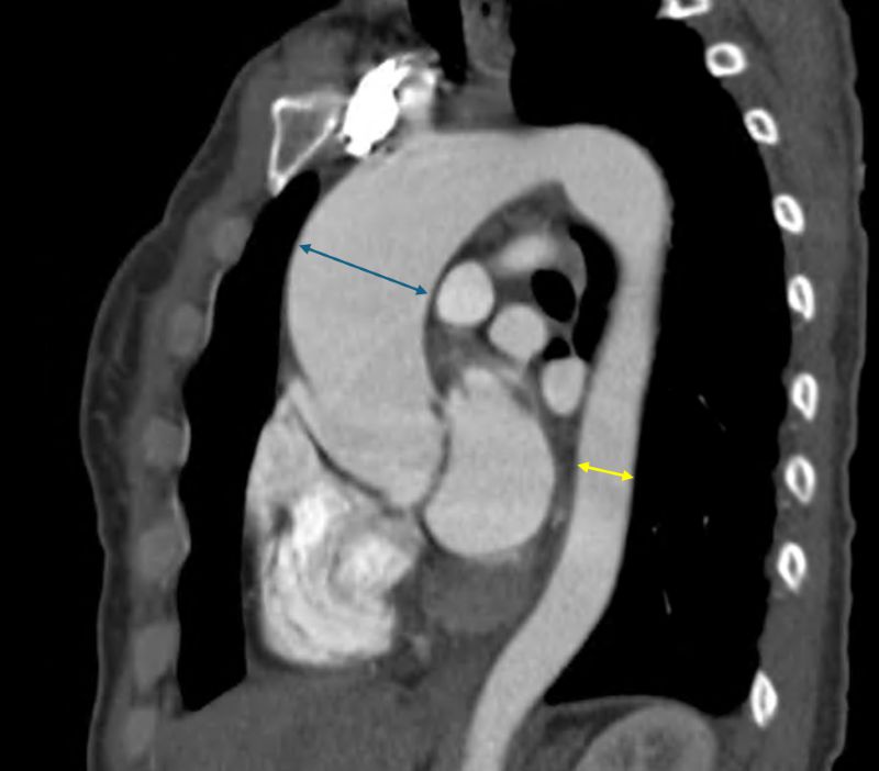 48歲陳女士,6個月前就出現活動時胸悶、喘不過氣的症狀,甚至數度因接近昏倒被送醫,但她一直未將不適放在心上。直到今年3月,她因不適至鄰近醫院檢查心臟超音波,才發現罹患重度主動脈瓣膜狹窄,隨時可能導致猝死,因此緊急轉診至台北慈濟醫院治療。心臟血管外科楊凱文醫師替其以心導管與電腦斷層進行術前評估,發現她不僅主動脈瓣膜鈣化嚴重,主動脈也已有近5公分的動脈瘤,未來可能有破裂風險,此外,她的主動脈瓣更是天生只有兩片(正常為三片)。在與病患討論後,楊醫師採用微創僅6公分的開胸方式,更換人工主動脈瓣膜與人工血管,減少出血疼痛,術後一天,陳女士即轉入普通病房,加速術後復原。