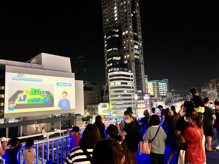 市府由參議楊桂杰代表出席,與孩子們一起欣賞光影展演,見證這場充滿童趣與創意的藝術饗宴。延續去年投影展演廣受好評,今年持續以戶外數位投影方式,呈現孩子的作品,並選擇視野最佳的微風東岸作為觀賞主場地,讓市民能在最舒適的環境中欣賞孩子的創作。