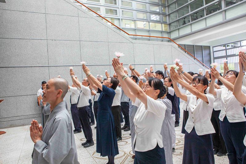 近日接連豪雨導致土石淹沒台鐵軌道、蘇花公路隧道受阻,花東交通多次中斷,讓人深刻體認到「世間無常、國土危脆」的現實,人類在大自然面前的渺小。所以,在沉澱心靈、凝聚善能量的同時,師生也衷心祈禱天下無災,四大調和,讓傷害降到最低。