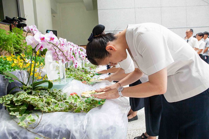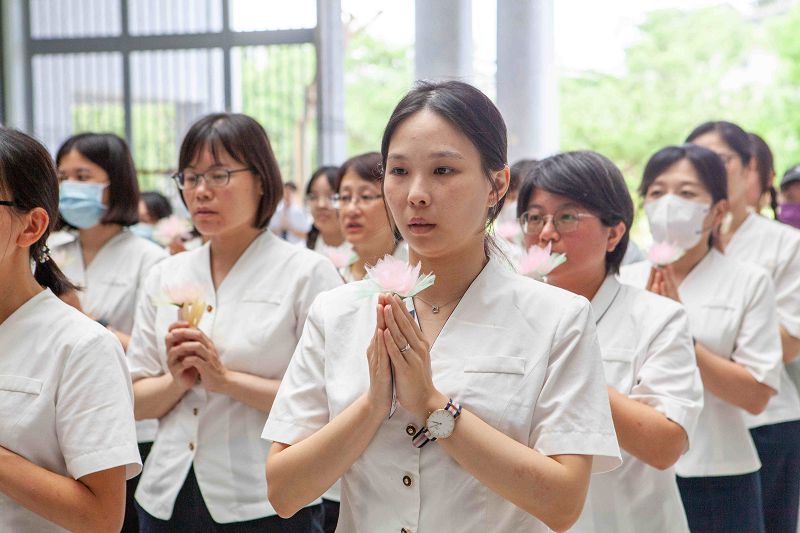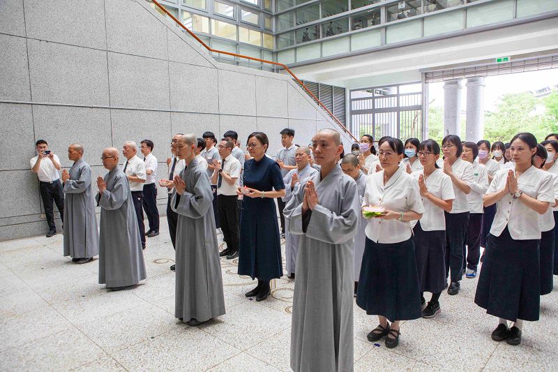 慈濟大學5月23日在介仁校區舉辦莊嚴隆重的浴佛典禮。劉怡均校長、何縕琪副校長、張嘉澍顧問、牛江山學務長與陳清漂總務長等師長親自獻燈燭、獻法香,帶領師生同仁一同感受莊嚴肅穆的浴佛氛圍。