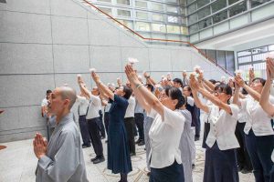 全民健走活動隊伍,上午8點全部回到慈濟宮,入廟向保生大帝行參拜禮後,宣布活動圓滿結束。