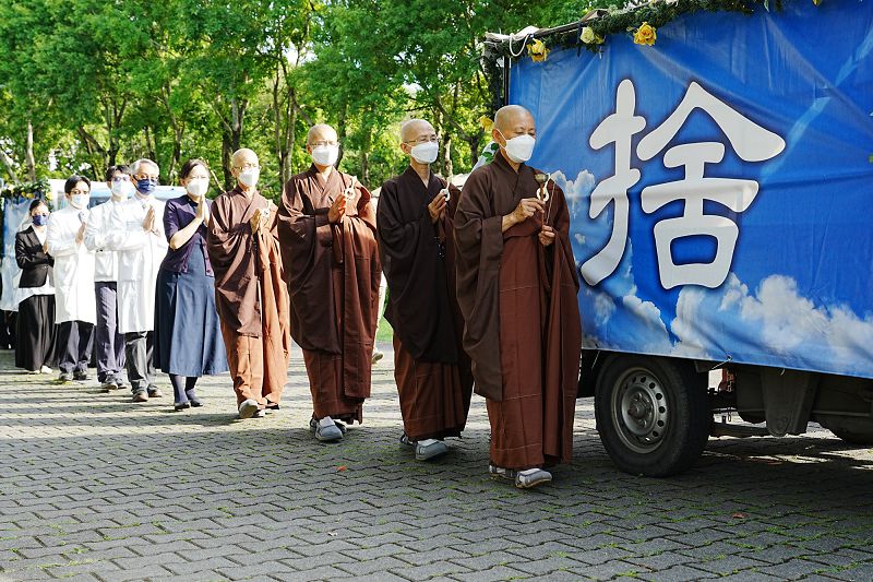 23日慈大舉辦送靈典禮,在精舍師父的引禮下,由劉怡均校長,以及來自各醫學會的醫師們與家屬,送別八位無語良師,五月的模擬手術八位無語良師為鄭寶珠、鐘温仁、戴瑞緣、吳鬃、林文昭、曾鄭紋、許高峯、陳詹燕。