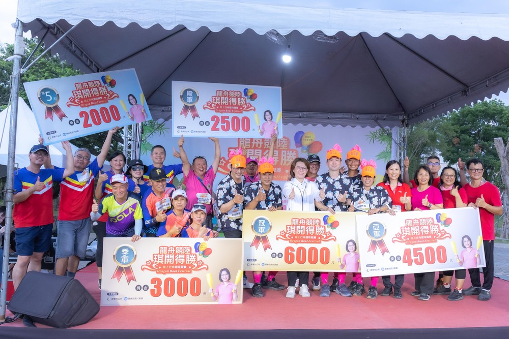 比賽結果出爐糯米萌芽組是由「勝利無法取代隊」、龍舟少俠組是由「鶴聲國中棒球隊」、競速猛將組是由「王踩划隊」、錦繡五彩組是由「歐爸媽隊」、福滿艾香組則是由「海馬隊」獲得冠軍。冠軍隊伍開心地表示,相當感謝市公所的用心,每逢端午佳節就會舉辦具創意又有趣味的陸上行舟競賽,不但有精彩的開場表演,周邊還設置了特色市集,讓大家能聚在一起,提前慶端午,也期盼這活動未來能持續舉辦。