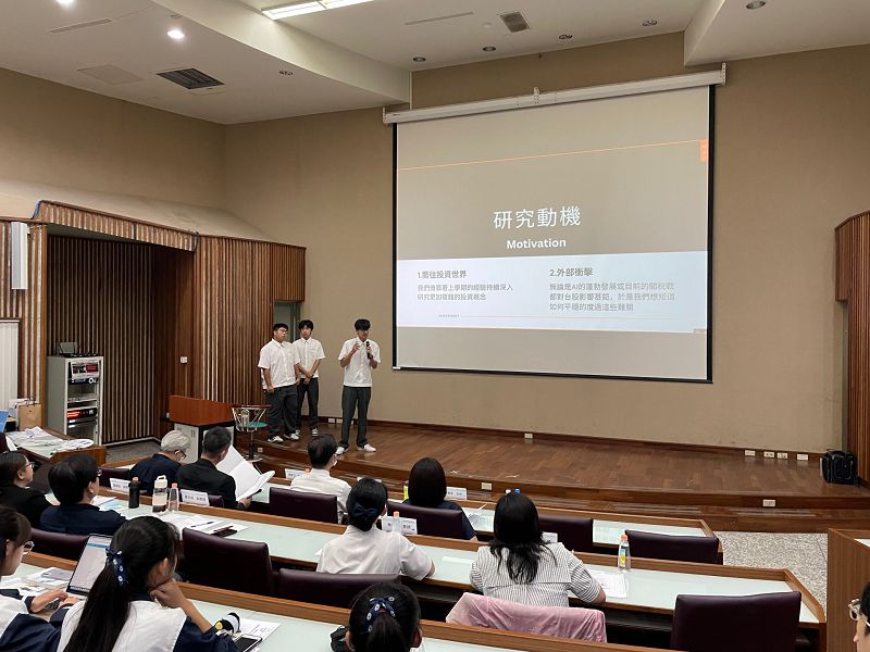 本學期學生探究主題多元,涵蓋社會議題、科技發展、文化觀察、心理研究、城市規劃等,反映學生對世界的關心與深度思辨。其中幾項議題表現尤為亮眼:永仁高中高二廖泓誠、楊本紘、洪振軒在大學生高苡瑄、?子庭、陳威華指導下針對《打造穩健的投資組合》結合高中經濟課程理財教育切入,研究風險分散與資產配置的重要性,模擬高中生視角下的入門型理財策略。