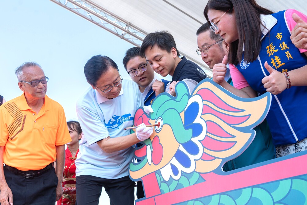 【記者吳惠民桃園報導】桃園市長張善政31日上午在立法委員牛煦庭、市議員張桂綿、錢龍、許清順、市府工務局長汪在宙、民政局副局長藍品畯、蘆竹區長李岳壇及南崁五福宮主任委員邱進賢、榮譽主委陳宗賢等人陪同下,前往蘆竹區出席「桃園市蘆竹區鐵道龍舟嘉年華活動」。