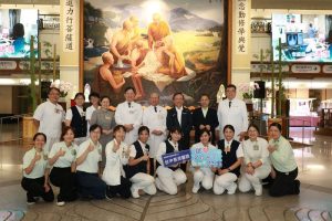 桃園市長張善政(左三)與立法委員呂玉玲(右三)、涂權吉(左二)、市議員林政賢(右二)、張肇良(右一)及民政局長劉思遠(左一)進行啟動儀式。