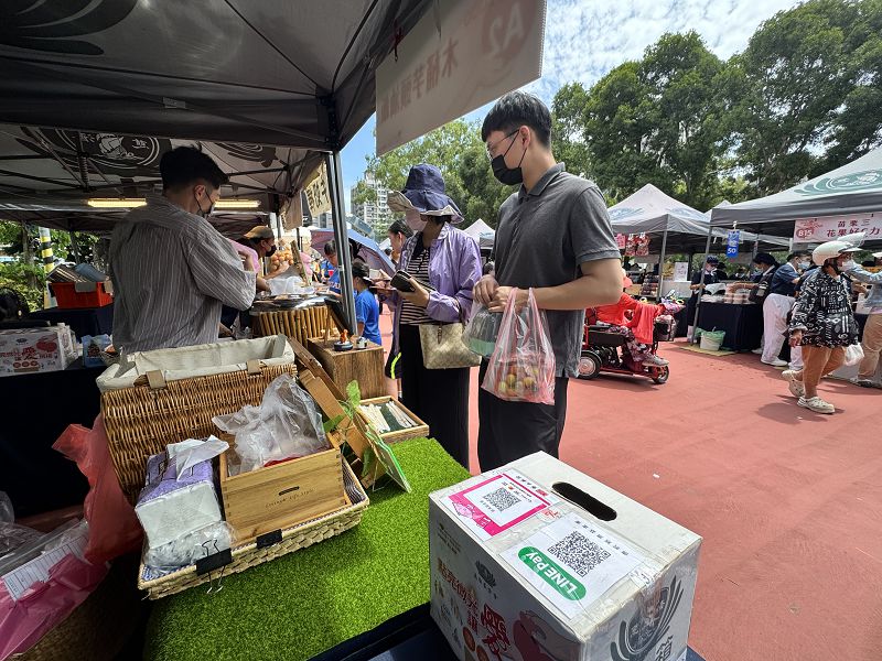 義賣品項除了慈濟志工與當地商店準備的美味佳餚,還有當地愛心商店與愛心人士捐出自家商店產品與自己做的藝術品。志工劉怡芬表示,有6家愛心商店提供飲品、食品、手工藝品義賣。經營服飾的陳小姐表示,今天公休出席當工作人員,今天響應活動的人真的很多,比我平時來運動看到的還要多。這個活動很有意義,我們這裡有很好的場地,我覺得可以多舉辦,苗栗人很有善心。