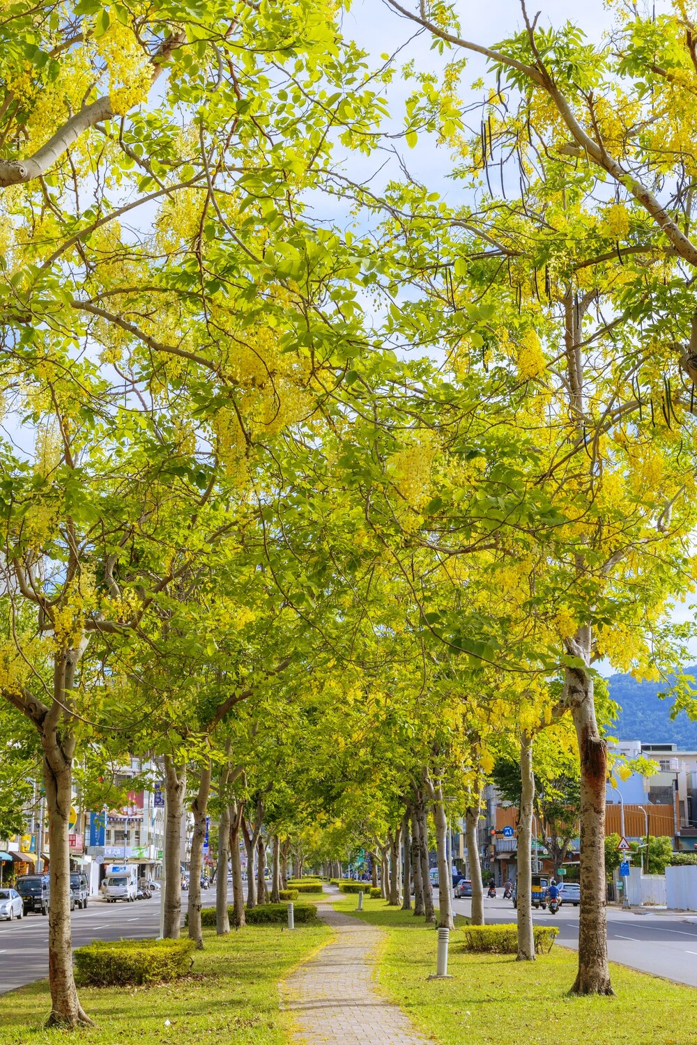 隨著春末腳步漸遠,象徵「金色之戀」的阿勃勒近來在高雄璀燦綻放,港都下起美麗的黃金雨!市府工務局公園處表示,目前在高市鼓山區九如四路、楠梓區高雄大學路、苓雅區和平路及光華路、鳳山區南京路與輜汽路等地,均可見阿勃勒燦爛身影,阿勃勒是原產於南亞印度及斯里蘭卡的落葉喬木,最適生長於日照充足、氣候溫暖的環境,花季約持續至6月中旬,隨著花謝後將轉為長條形果莢,成熟時呈深褐色,因形似臘腸,也被稱為「臘腸樹」,其獨特生長姿態與色彩變化,讓人感受到自然節令流轉與生命律動。(圖文:記者陳志昌)