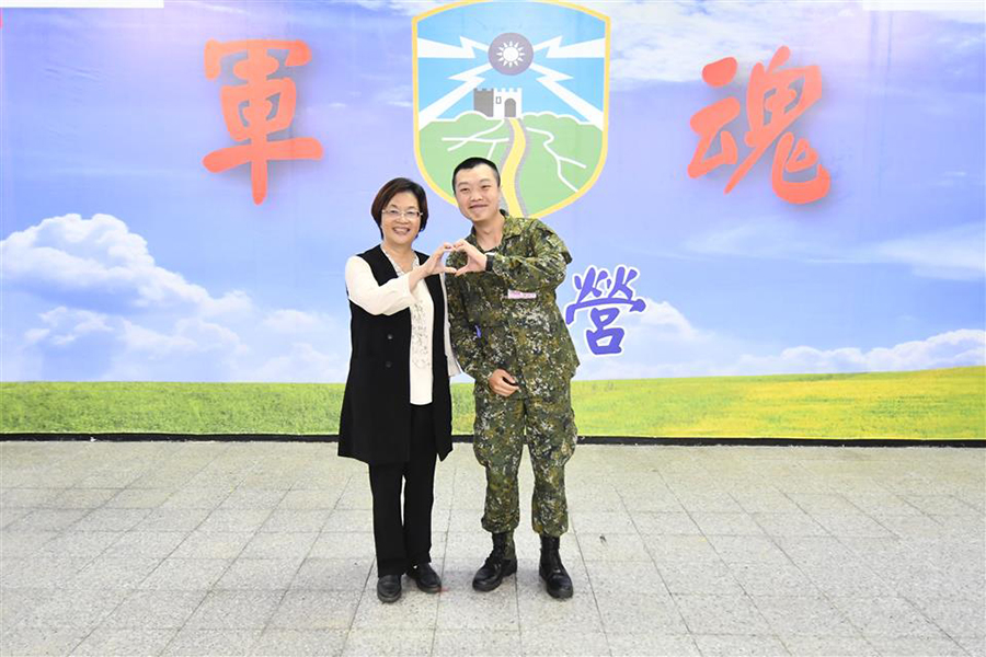 【記者鄭惠珠彰化報導】彰化縣長王惠美關心彰化子弟兵,4日由縣府民政處副處長陳俊南、彰化縣軍人服務站長魏治民等人陪同,前往嘉義中坑營區探視陸軍第225梯次縣籍役男共109人,受到營區長官及受訓役男熱烈歡迎。王縣長致贈加菜金及每人一份速食餐點,並以縣長媽媽的身分殷殷叮囑役男把握服役期間鍛鍊身體、立定志向,更要保重身體,快樂當兵,平安退伍。