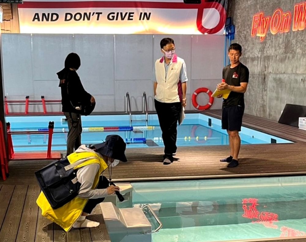 運發局說明,今年迄今已完成聯合稽查的高雄市公、民營游泳池,包含新興游泳池、三民游泳池、國際游泳池戶外池、大地游泳池、長青村游泳健康中心、WorldGym左營店、WorldGym陽明店、蘭卡威氧身都會館、YMCA英明館、YMCA和平館及健身工廠博愛廠、Vertex丸鐵運動、Sunbody海光游泳教學中心、泳將游泳健身俱樂部、高雄市政府環境保護局中區回饋游泳池及仁武回饋游泳池等。