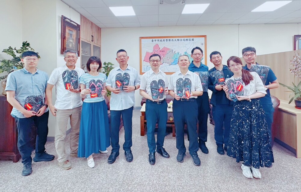 一年一度的警察節即將到來,大雅警分局4日特別利用分局會議時間,舉辦一場簡單而溫馨的慶祝活動。分局長劉明興(左5)親自主持,向全體警察同仁表達誠摯的感謝與敬意,並邀請長期支持警政工作的警察之友,墾丁知名企業家「吳燈財」先生致贈每位同仁一雙精美實用的沙灘鞋,現場氣氛溫馨感人,員警們紛紛表達感謝與感動。有同仁笑說:「這雙沙灘鞋不只是禮物,更像是一種提醒,讓我們知道除了工作,生活也很重要。」也有員警表示,已經開始規劃假日出遊,準備帶著家人到海邊走走,享受陽光與海風。劉分局長在致詞中指出,警察節不僅是表揚警察貢獻的重要日子,更是提醒大家關注自身健康與生活品質的時刻。他表示:「我們的同仁每天面對各種勤務挑戰,從交通執法、治安維護到社區服務,無一不是為了市民的安全與福祉。(圖:記者馬淑娟/文:記者王雲彬)