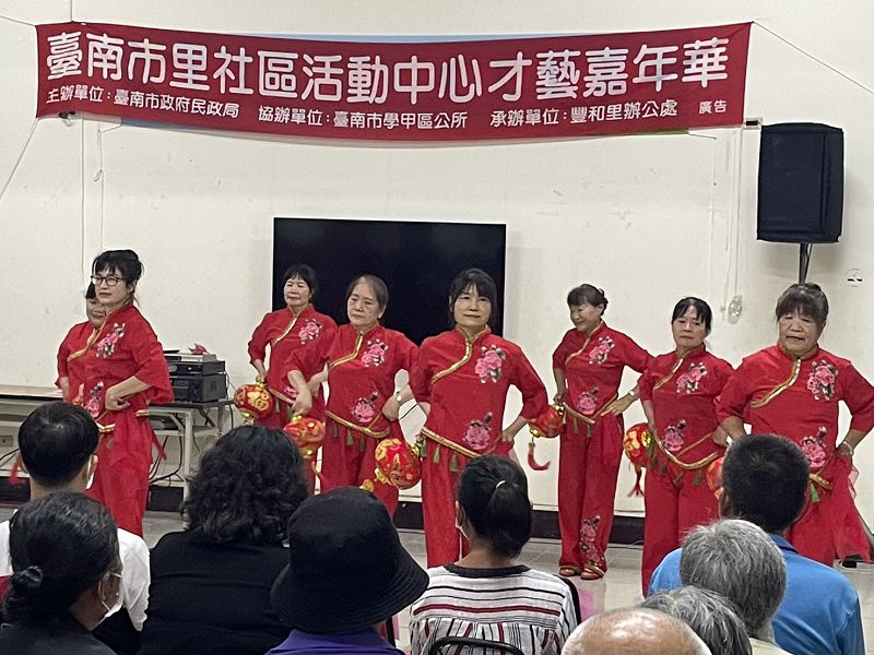 學甲區長張明寶表示,美豐社區媽媽教室舞蹈團以華麗的舞蹈「動起來」展開序幕,精彩的表演吸引民眾的目光,接著由美豐社區媽媽舞蹈教室、明宜社區土風舞班連袂登場展演,也帶來許多膾炙人口的歌曲,安可聲不斷,場面熱烈。