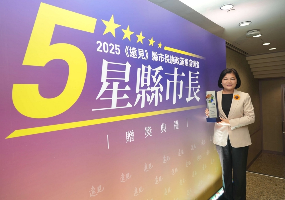 【記者雷琇雯雲林報導】2025年《遠見雜誌》縣市長施政滿意度調查結果出爐,雲林縣長張麗善以72.8%的高滿意度、73分的總成績,榮獲「五星縣長」殊榮,成為雲林縣史上首位獲此肯定的縣長。張麗善日前北上出席頒獎典禮,從遠見天下雜誌創辦人高希均手中接下獎座,贏得全場熱烈掌聲。