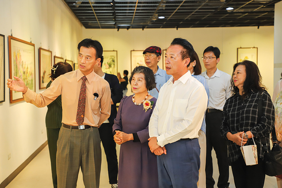 翁章梁說,林婉芬創作能量豐沛,最初專攻彩墨,後來開始學習書法,讓圖面更加完整,退休後更突破自我,接觸瓷繪領域,這些過程展現林婉芬的勤學態度,最終轉化為自我風格,歡迎大家把握時間,在6月15日以前來看展。