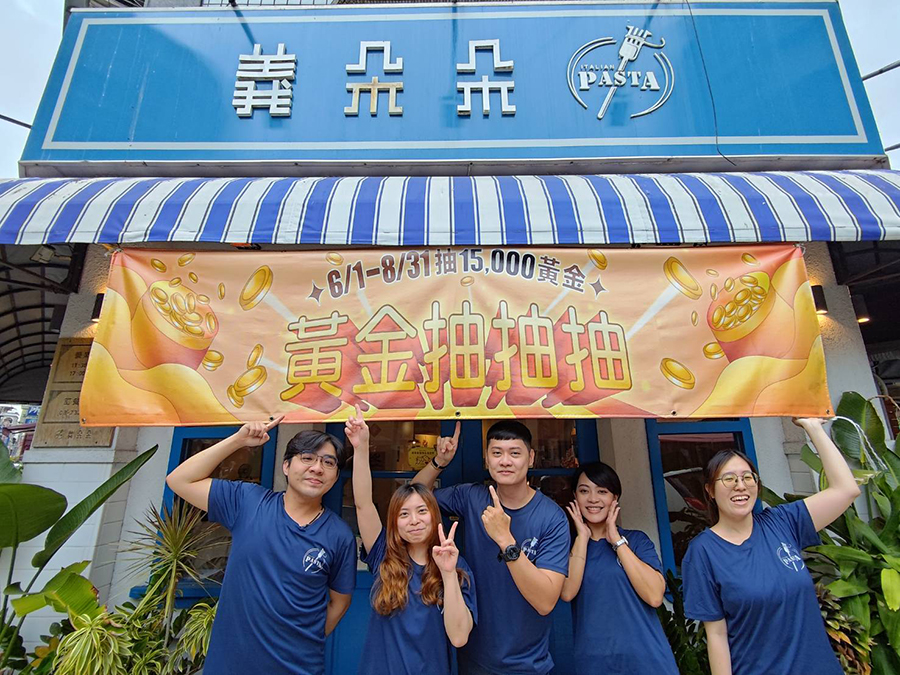 本次提供四條各是一錢重的「黃金手鍊貔貅」,市價至少一萬五千元以上,希望讓媽媽們帶來「黃金般的好運」,讓小家庭可以得到祝福。在物價飛漲的年代,秉持每份義大利麵的客單價,落在132元至137元左右,因自己剛出社會時,過得非常辛苦,希望「義朵朵pasta」讓親子家庭與消費者都享受美味,但荷包不會有壓力。