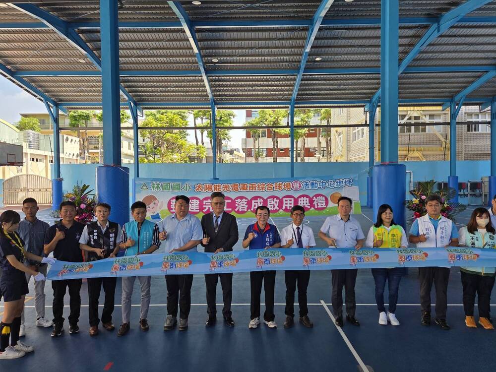 10日早上,林園國小在風雨綜合球場舉行太陽能光電風雨綜合球場及活動中心地坪整建完工啟用剪綵儀式,計有王耀裕議員與林園分局、區公所、教育局等單位長官、貴賓,以及地方民代服務團隊等數十人出席見證。