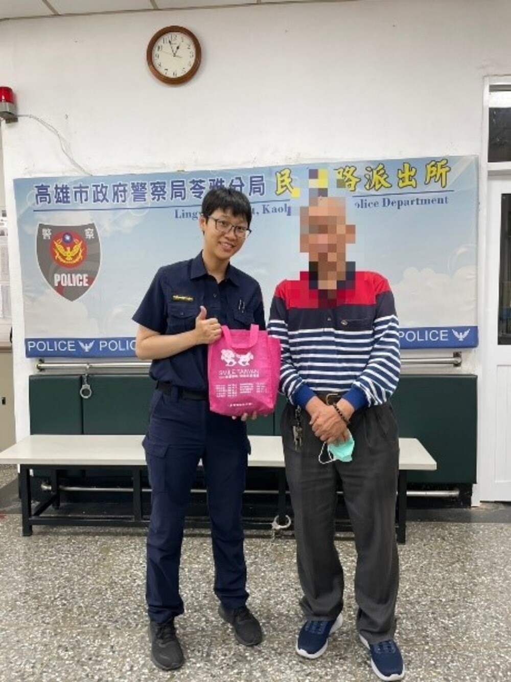 苓雅分局民權路派出所警員許珈萍日前中午值班時,ㄧ名民眾走進派出所,稱自己在路上撿到一只裝有存摺與個人證件的袋子,為避免失主因遺失物品造成困擾,立即送至派出所,請警方聯繫失主發還。許員依規定受理後,透過系統個人資料循線查詢,由於系統中只有家屬電話,許員連繫家屬後獲知失主孫姓老翁住所,便立即前往查訪。許員查訪時發現孫翁記憶不佳,對於是否遺失財物毫無概念,遂先向孫翁及其家屬反復說明民眾撿得物品的種類與數量,並出示事先拍攝的遺失物照片供確認,經過許員耐心解說,孫翁才恍然記起,自己確實在外出時遺落袋子,趕忙跟隨許員一同至派出所領回,在派出所時孫翁稱讚許員細心且有耐心,並反復道謝:「真的麻煩你們了,還好有你們。」(圖文:記者張福全)