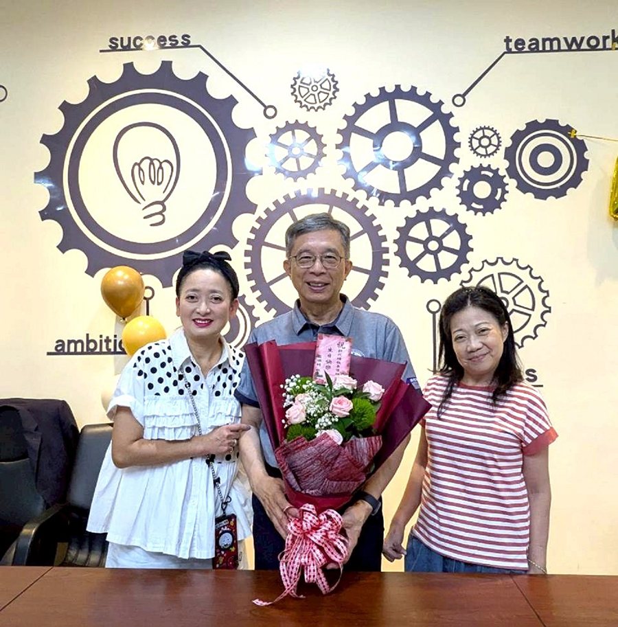 二、郭代璜校長與藍瑛綺校友(左)及張蕙蘭校友合影。(圖/大仁科大)